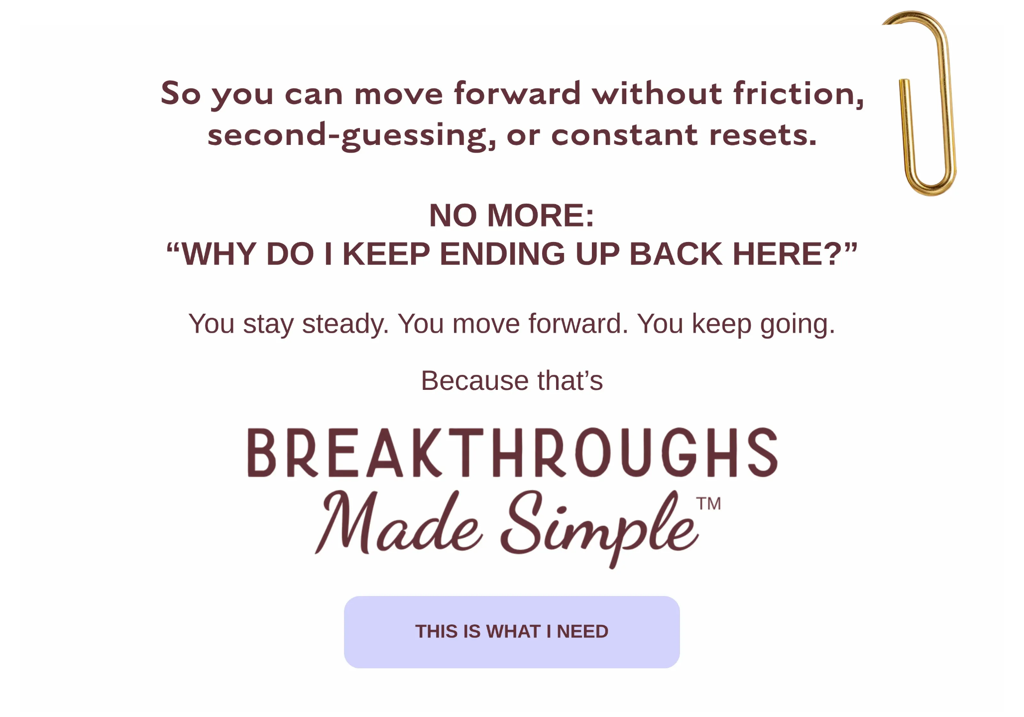 Breakthroughs Made Simple™ is intentionally designed to align with how change naturally unfolds. Every element—from the curriculum to the live calls, tools, and support—is structured to create clarity, steadiness, and sustainable transformation. This isn’t about rushing or forcing results; it’s about creating the conditions where breakthroughs happen and hold.